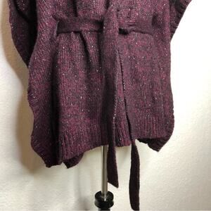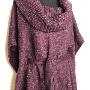 WHBM maroon metallic marled cowl neck belted poncho style sweater size Large
