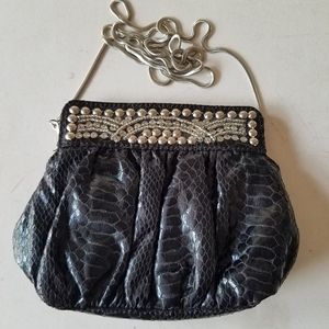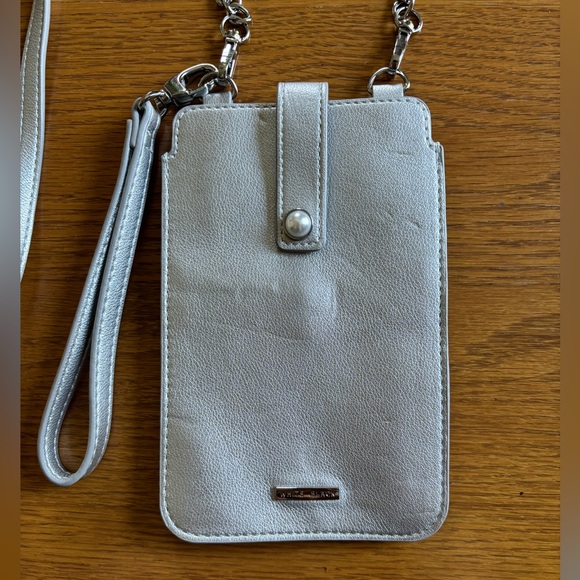 Holiday ready! This White House Black Market silver bag can function as a clutch or a crossbody with an adjustable strap, as seen in the photos. The crossbody straps can be easily removed as can the clutch strap. The bag is just big enough to insert my iPhone 14 (not a Pro model) as it measures 4.5” wide by 6.75” tall. The faux pearl strap snaps to keep your phone in place. The metal chain and faux pearl snap in the front dress up this accessory. On the other side are two other snap pockets where you could hold a driver’s license, credit cards, or cash. Great lightweight, minimalist, and versatile purse, but yet also very dressy! Could be worn to a wedding, special occasion, or for everyday if you want a silver pop of color. In good condition, stored and maybe used once? Nice stocking stuffer! Bundle with other items for a discount.