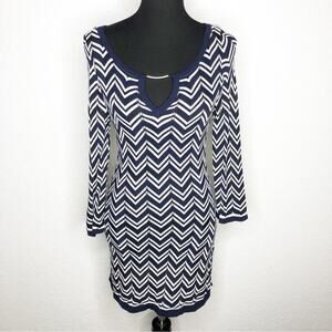 WHBM navy and white chevron knit lightweight sweater tunic size Small