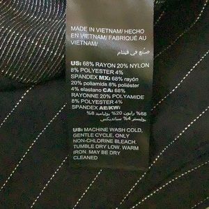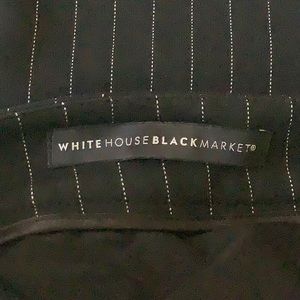 White House Black Market “The Slim” style black pinstriped pants. SZ 6. Waist 16 inches across. Inseam 29 inches. EUC.