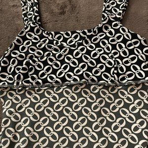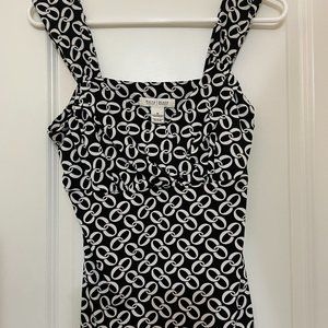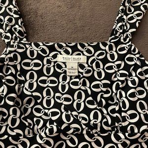 WHBM sleeveless black and white print top/blouse. Size M. Gathered bust with lined interior. Very good condition.