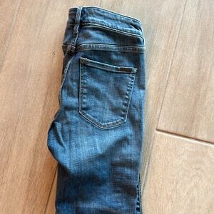 WHBM soft straight leg denim high rise with tuxedo outline with rhinestones