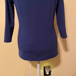 Ladies XS White House Black Market top, medium to dark blue shade, lightweight, cotton/spandex blend, 3/4 length sleeves