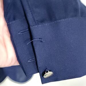 White House Black Market Navy blue asymmetrical layered tiered long sleeve blouse missing buttons on cuffs 40" bust 39" long