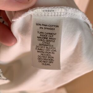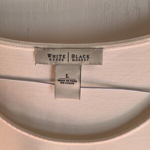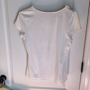 Excellent condition. White stretch tee with beautiful design on front. Has all sequins attached. Maybe worn twice. Size L. Approx measurements across bust 19” length 24.5”