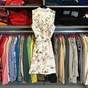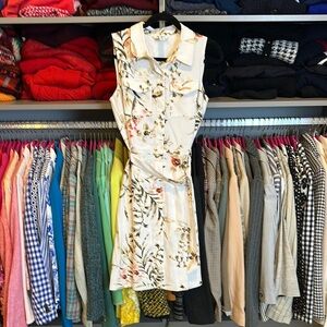 WHBM white with floral print sleeveless belted dress size 4 NWOT
