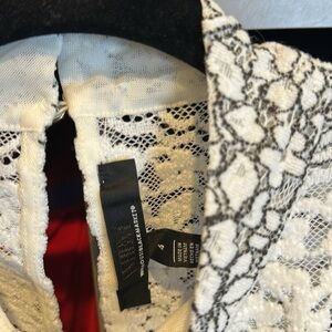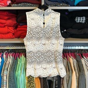 WHBM white/tan embroidered sleeveless mock neck button back top size 4