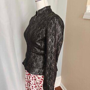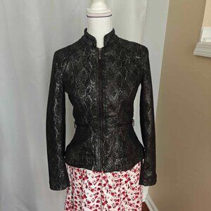 WHBM women Petite Jacket 0 Foiled Denim Python Print Peplum snakeskin pattern