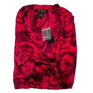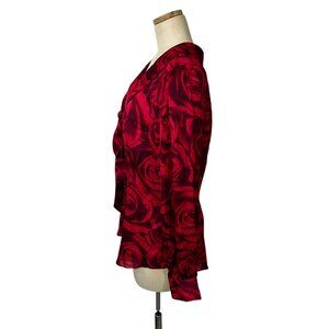 WHBM women's blouse 8 red rose print button down long sleeve top satin feel NWT