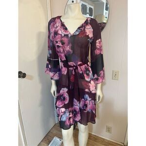 WHBM 3/4 Bell Sleeve Ruffle Kimono Inspired Floral Dress XS