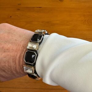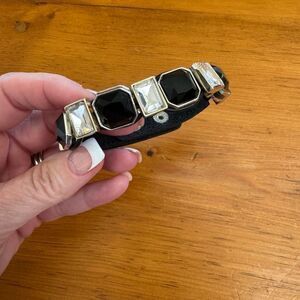 WHBM Black Crystal Square Leather Bracelet