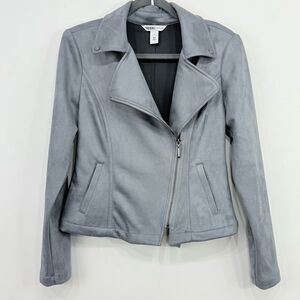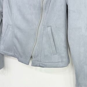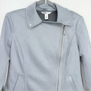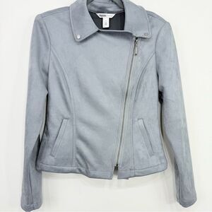 WHBM Outlet Slate Blue Gray Faux Suede Moto Style Side Zip Crop Jacket