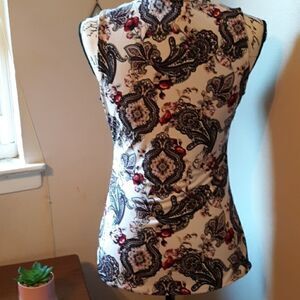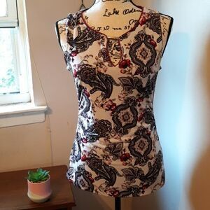 WHBM PAISLEY KEYHOLE FITTED SLEEVELESS BLOUSE XS