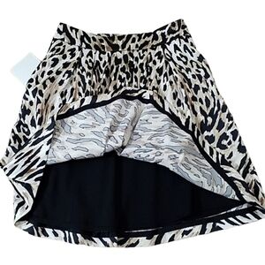 Beige Black Animal Print Satiny Lined Flare Skirt w/Pockets NWOT New Without Tags.