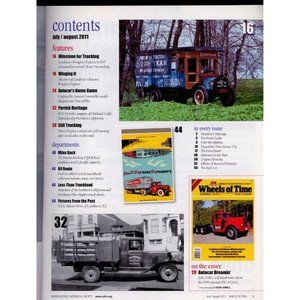 Listed here is WHEELS OF TIME JULY/AUG 2011 Goodyear's Wingfoot Express, WH Parrish Co., Martin Rocking Fifth Wheel, Truck Matchbook Collection, and much more!