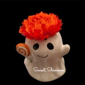 Here we have this New with tags, Adorable Mom & Baby Ghost Ceramic, planter pots. Mom has a faux Succulent for hair and Baby has a faux Cactus Flower for hair. They are soooooo cute! Don't pass them by, as they would make a unique addition to your Halloween decor!!