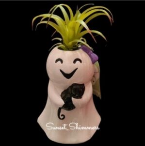 WHIMSICAL Halloween Ghost Mom & Baby Planter Pot Faux Succulent Cactus Flower