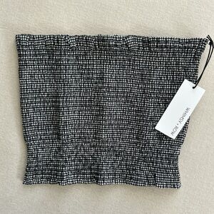 WHIMSY AND ROW: "MATILDA" TUBE TOP — new with tags — black gingham — fully smocked, ruffle detail at hem — cropped fit — size large runs small, more like a medium — stretchy — retails for $98 —