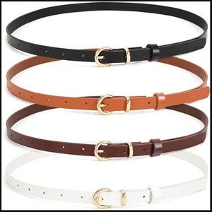 WHIPPY Set of 4 Skinny Leather Belts Women's Size 100cm Brown/Black/White/Coffee