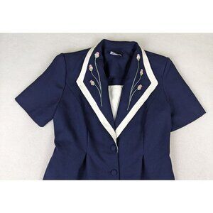 WHIRLAWAY FROCKS VINTAGE WOMENS BLUE SHORT SLEEVE JACKET DRESS - SEE MEASUREMENT