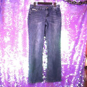 WHISKERED JEANS 4 Christopher & Banks Flare Ultra Low Rise Wide Leg Y2K 90s