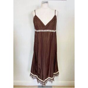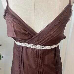 WHISTLES LONDON A-Line Dress 100% Silk Fine Adjustable Straps Pleated Lace Detail Lace Trim Size 4 Chocolate Brown Fully Lined Side Zip & Hook and Eye Closure In Excellent Preowned Condition Approx Measurements Pit to Pit 14.5" Length 35" Whistles, Whistles London, Sil Dress, Wedding Guest, Sorority Dress