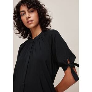 WHISTLES Black Celestine Tie Detail Dress Size Medium Oversized Shift Pockets