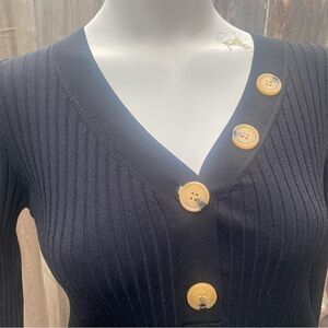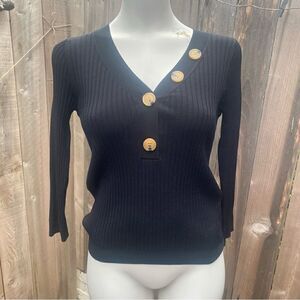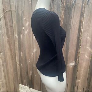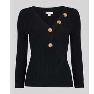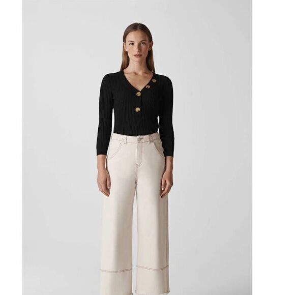 WHISTLES Button Detail Ribbed Sweater in black size