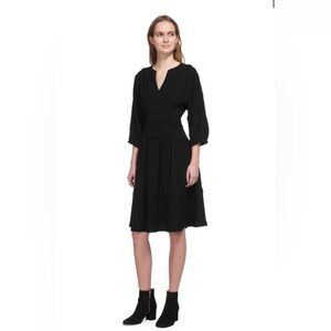 WHISTLES Eliza Pom Pom Trim Dress in Black Size 4
