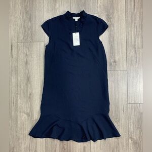 WHISTLES Federica Navy Frill V-Neck Dress Size 4 NWT