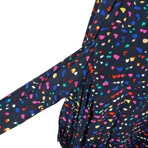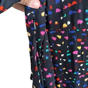WHISTLES Multicolor Pearl Fiesta Print Dress. In a unique fiesta print adorned on a black dress, this is the perfect piece to enliven your winter wardrobe. Designed with a fitted waist, it comes in a short length and A-line shape that is easy-to-wear for a multitude of occasions. Style with everything from trainers for a relaxed look, to leather heeled boots after-hours. V-neck with optional hook closure. A-line
