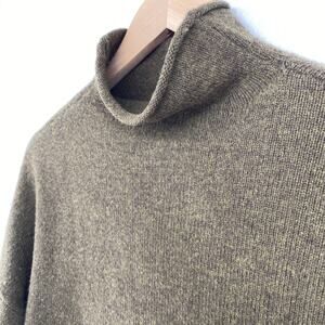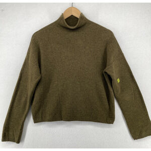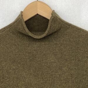 WHISTLES Sweater XS Merino Wool Boxy Jumper Funnel Neck Pullover Green Mended