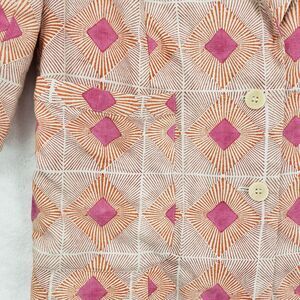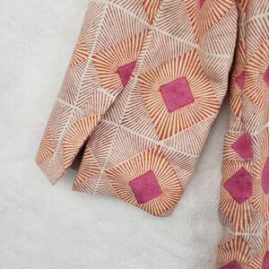 WHIT Blazer Womens Small Pink Orange Geometric Linen Silk Made in USA 3/4 Sleeve
