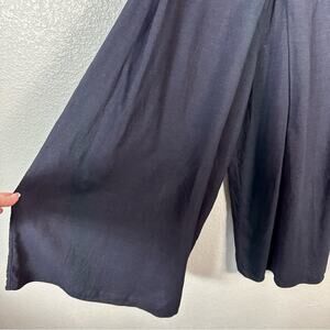 WHIT New York Womens Clemence Linen Wide Leg Crop Pant in Navy Blue Size 2