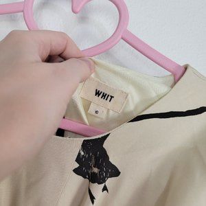 WHIT Printed Silk Shift Twist Front Bird Quirky White Dress Women Size 6
