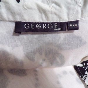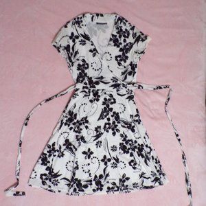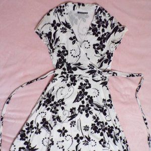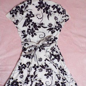 WHITE AND BLACK FLORAL A-LINE MIDI DRESS MEDIUM