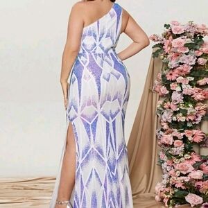 TAGS- MULTICOLOR, PLUS SIZE, CONTRAST SEQUINED, ONE SHOULDER, GRAPHIC DESIGN, PREMIUM BRAND AND QUALITY, SPECIAL EVENTS, WEDDING, BLACK TIE, PARTY, PROM, HOMECOMING, DANCE, GENDER REVEAL, ANNIVERSARY, PHOTOSHOOT, TRENDING, INFLUENCER PICK, HOLIDAY