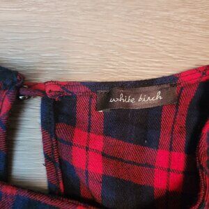 WHITE BIRCH Top Womens L Flannel Plaid Ruffle Hem Bell Sleeve Boho Cottagecore
