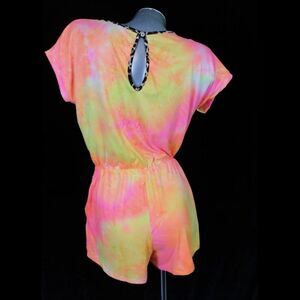 WHITE BIRCH LEISURE ROMPER TIE DYE LEOPARD TRIM SIZE MEDIUM NWOT