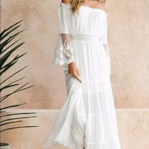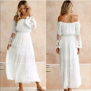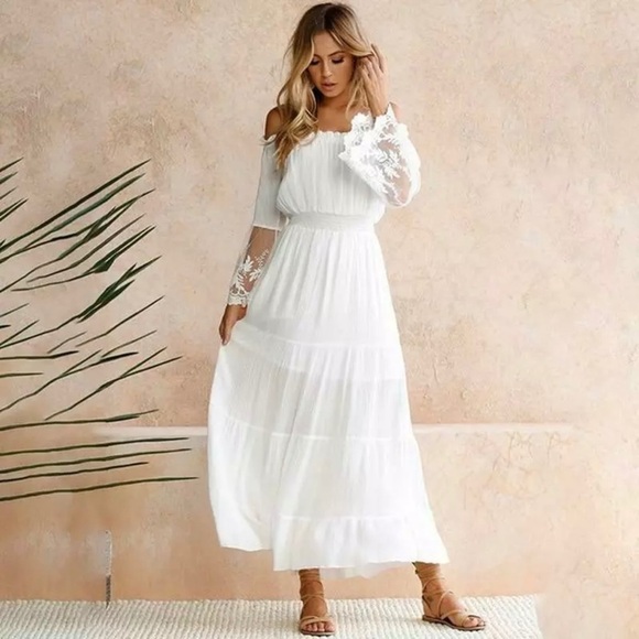 WHITE BOHO LACE MAXI DRESS WITH A BANDEAU NECK - LAST ONE!