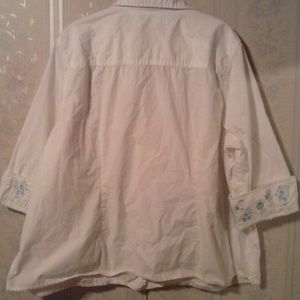 *WHITE BUTTON DOWN BLUE EMBROIDERY 3/4 SLEEVE SHIRT - PLUS