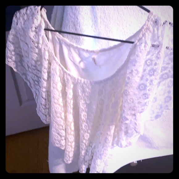 WHITE COTTON TOP HANGS OF THE SHOULDERS