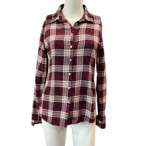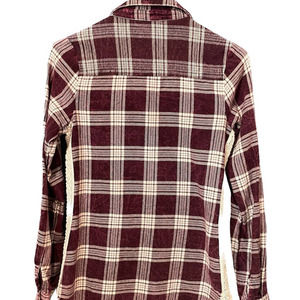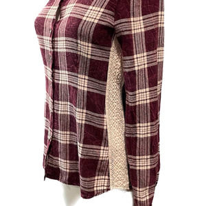 WHITE CROW Plaid Flannel Button Up Shirt Long Sleeve Crochet Side Detail Size XS