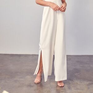 WHITE DEEP V-NECK WIDE LEG JUMPSUIT | BRIDAL JUMPSUIT | WEDDING JUMPSUIT