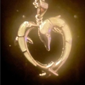 Unique white opal dolphin heart pendant on sterling silver. Comes with a sterling silver chain. NWT. #dolphinnecklace, #dolphinpendant, #heartnecklace, #heartpendant, #opalnecklace
