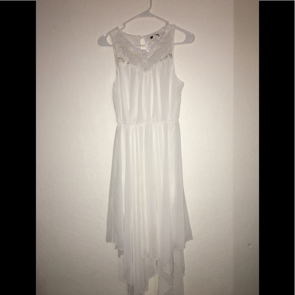 A white dress, I’m 5’3 and it fits little above my ankle I’m also a size 2, but it fits up to a 4 Worn only once for 2 hours