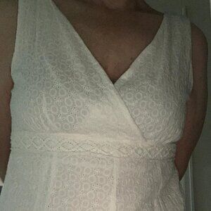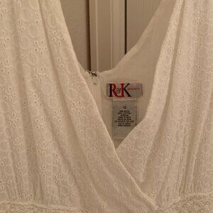 WHITE EYELET SUMMER DRESS, V-NECK, BY R & K ORIGINALS, NEW WITHOUT TAGS