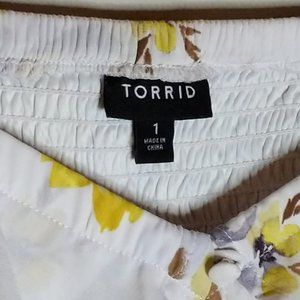 WHITE FLORAL GEORGETTE FIT & FLARE COLD SHOULDER TOP