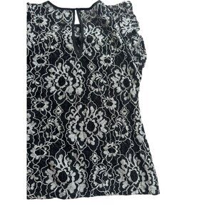 WHITE H0USE BLACK MARKET Lace Floral Ruffle Cap Sleeve Top Size 0