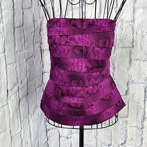 WHITE HOUSE BLACK MARKET Animal Print Layered Purple Corset Blouse Size 6